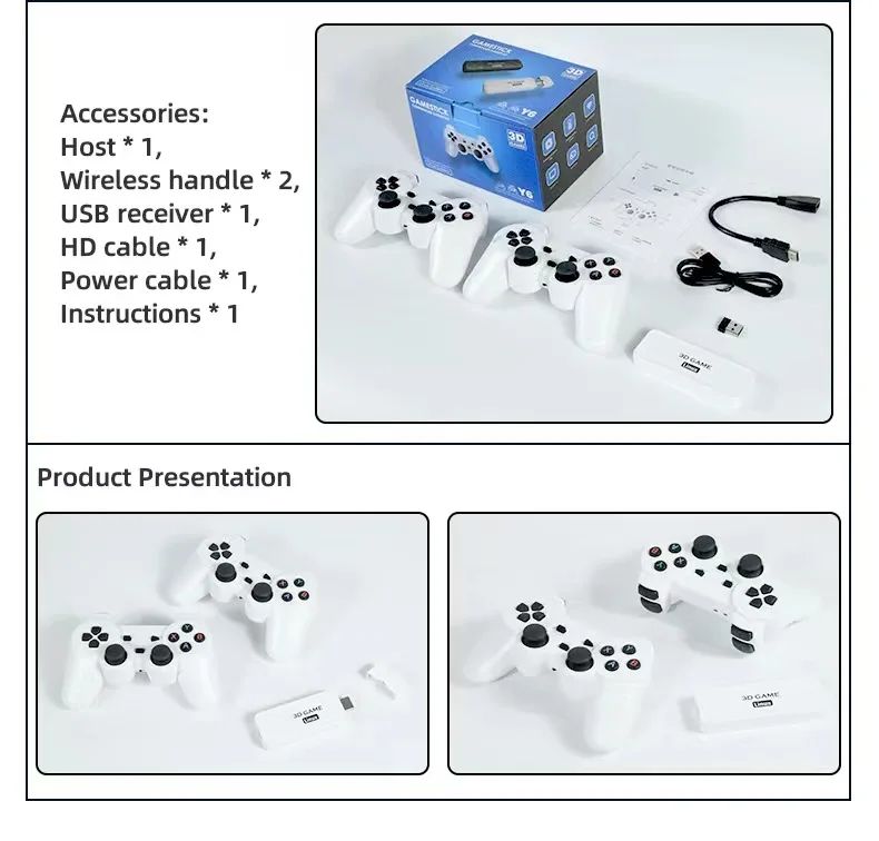 NEW Y6 Wireless Game TV Stick 2.4G Retro PS1 Style Family 4K HD Portable Video Game Console Supports Multiplayer with 10000 Game