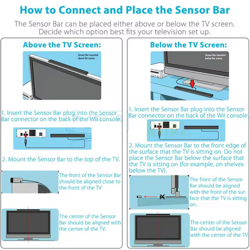 The sensor bar can be placed either above or below the TV screen (For Wii System Is Not Included).